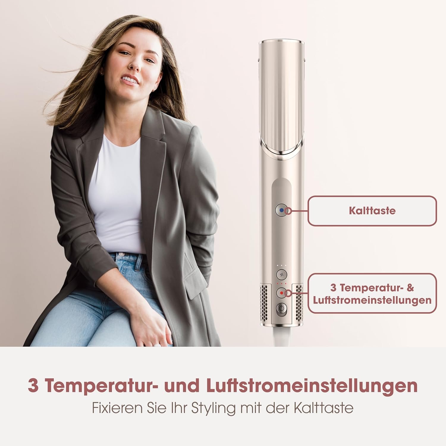 - 3 STYLING-MÖGLICHKEITEN: Locken, Volumen verleihen, Geschmeidigkeit für Ihr Haar mit 3 Stylern: Auto-Wrap-Lockenwickler, Ovalbürste und Konzentratordüse